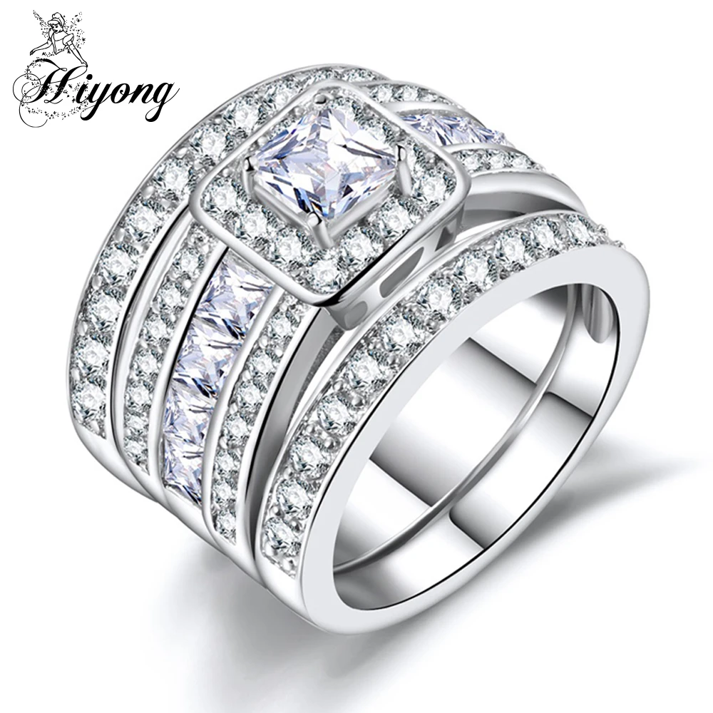 Hiyong Huge Wedding Ring Set Of 3pcs Stacking Matching Band Halo Bridal Jewelry Accessory Square Cubic Zirconia Bisuteria Bague Ring Set Wedding Ring Setset Of Aliexpress